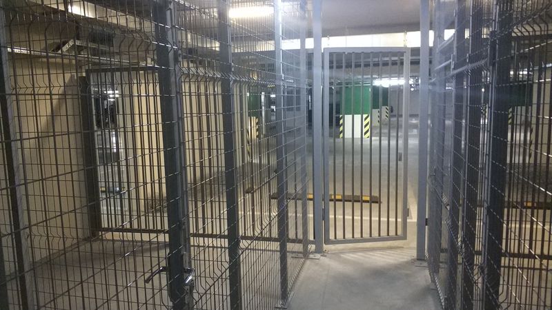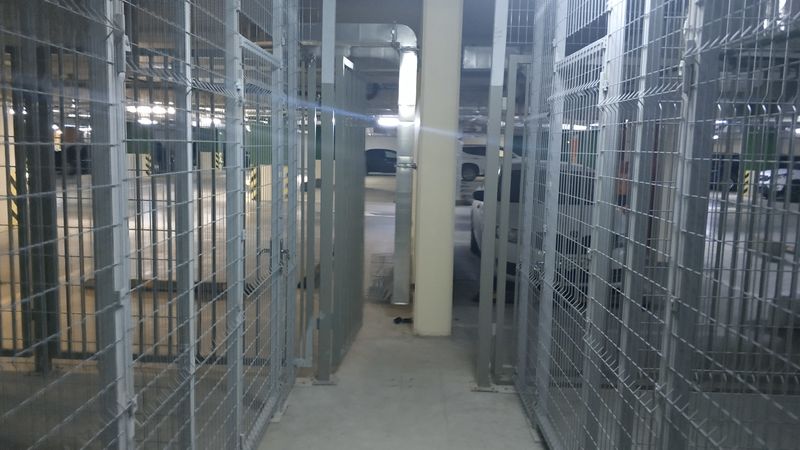 Расположенные на -1 и -2 этажах подземного паркинга помещения формируются из светопрозрачных металлоконструкций, окрашенных в серый цвет. Кладовые имеют общее освещение и пожаротушение. Каждая кладовая оборудована входной дверью с ручкой и врезным замком. Фактически доступ к кладовой осуществляется через 2 запираемые двери, где первая преграждает посторонним путь в общую зону кладовых, а вторая защищает саму кладовую. Тем самым обеспечивается дополнительную сохранность размещенного в кладовой имущества.