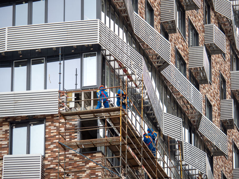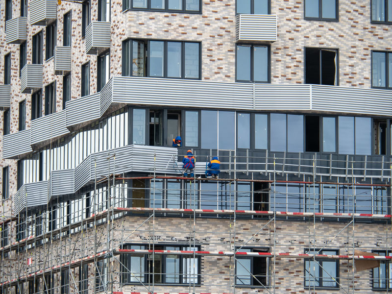 По периметру Квартала продолжается монтаж фасадных лесов и выполняется кладка внешних и внутренних стен из газобетонных блоков, осуществляется монтаж инженерных сетей в подземной части здания.