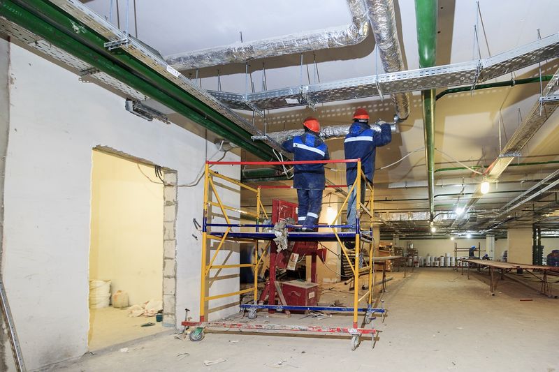 Завершается монтаж технологического оборудования ВРУ, ГРЩ, ИТП, проводятся первые испытания. Монтируются вентиляционные установки.