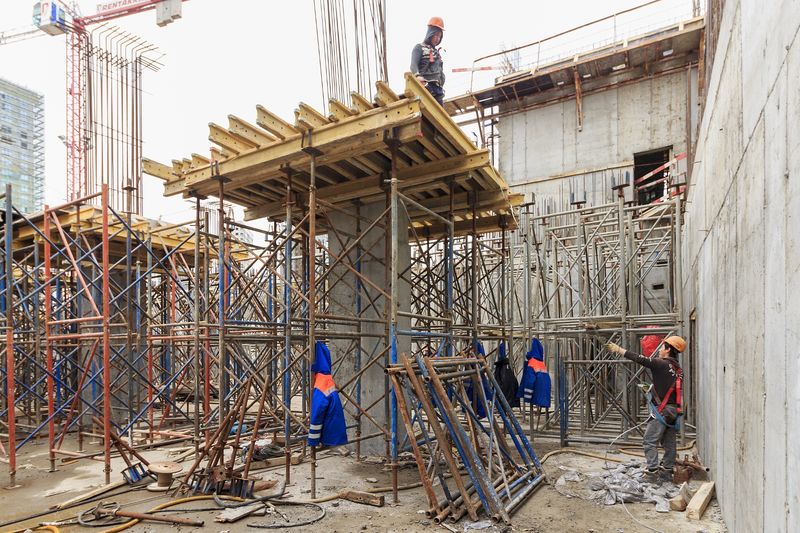В Квартале осуществляется армирование и монтаж опалубки горизонтальных перекрытий паркинга.