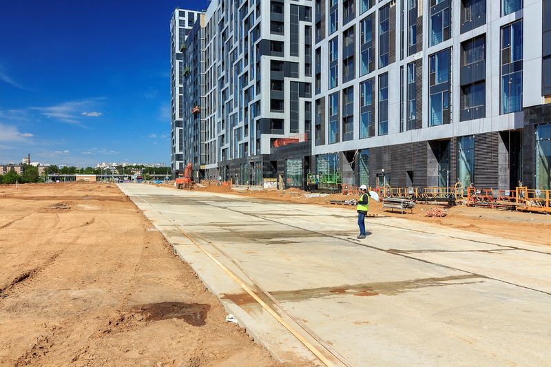 Вдоль секций Квартала 2 залито бетоном основание дорожного полотна будущего центрального бульвара.