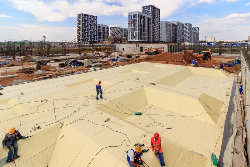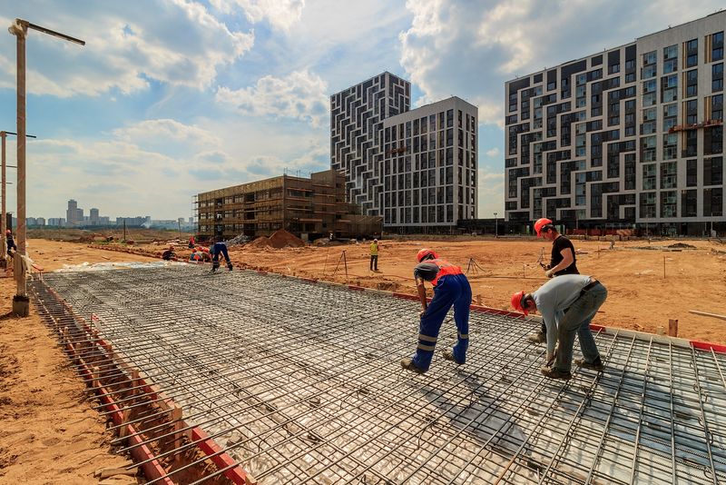 В Квартале 3 залито 12 из 14 фундаментных плит, соответствующих количеству секций будущего жилого дома. Продолжаются работы по армированию будущих горизонтальных и вертикальных перекрытий, монтажу опалубки и заливке бетона. Выполняется бетонная подготовка и гидроизоляция в межсекционном пространстве на месте будущего подземного паркинга.