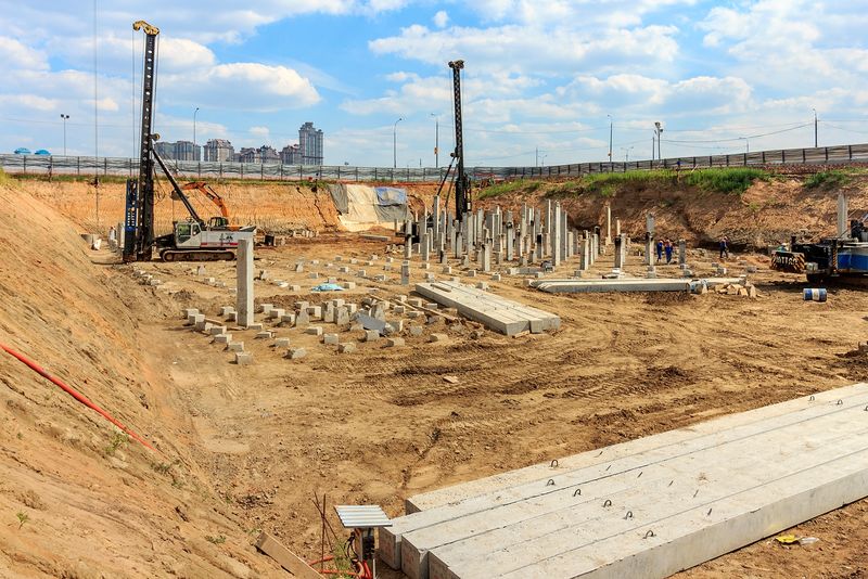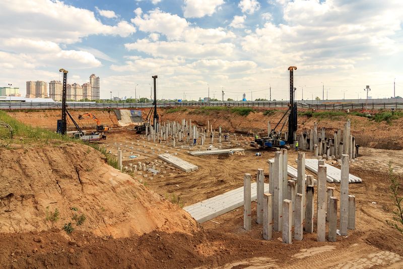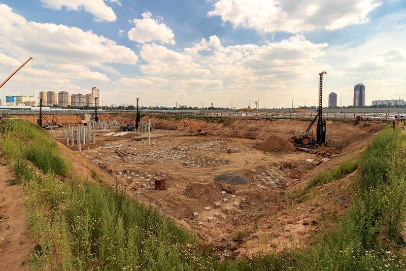 Продолжаются свайные работы в Квартале 4, существенный объем которых уже выполнен. Сейчас забито порядка 1750 свай. Будущее свайное поле готовят к выполнению бетонной подготовки.