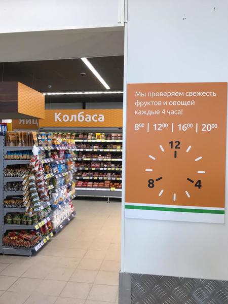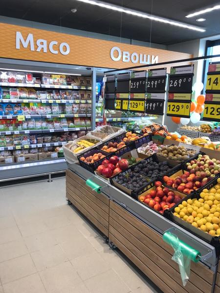 В магазине представлены отделы свежих овощей и фруктов, мяса, напитков и бакалеи. Для тех, кто спешит, есть отдел готовых блюд и возможность взять кофе с собой.