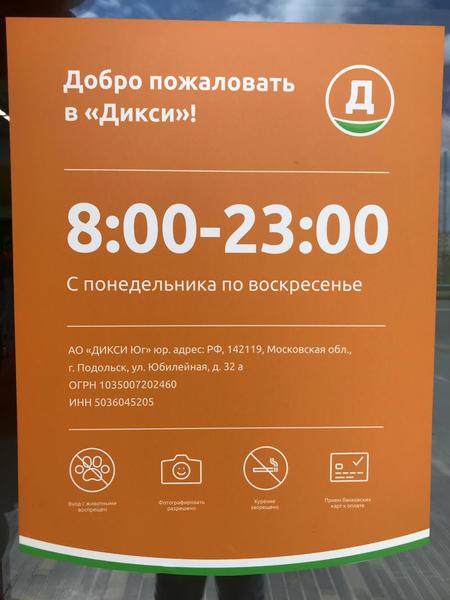 Время работы магазина – с 8:00 до 23:00 ежедневно.